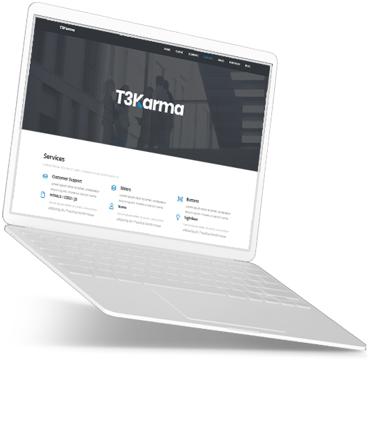 We are T3 Karma, We Create Solutions. T3 Karma is an ultimate multipurpose TYPO3 template packed with tons of modern and powerful elements.